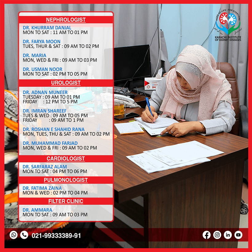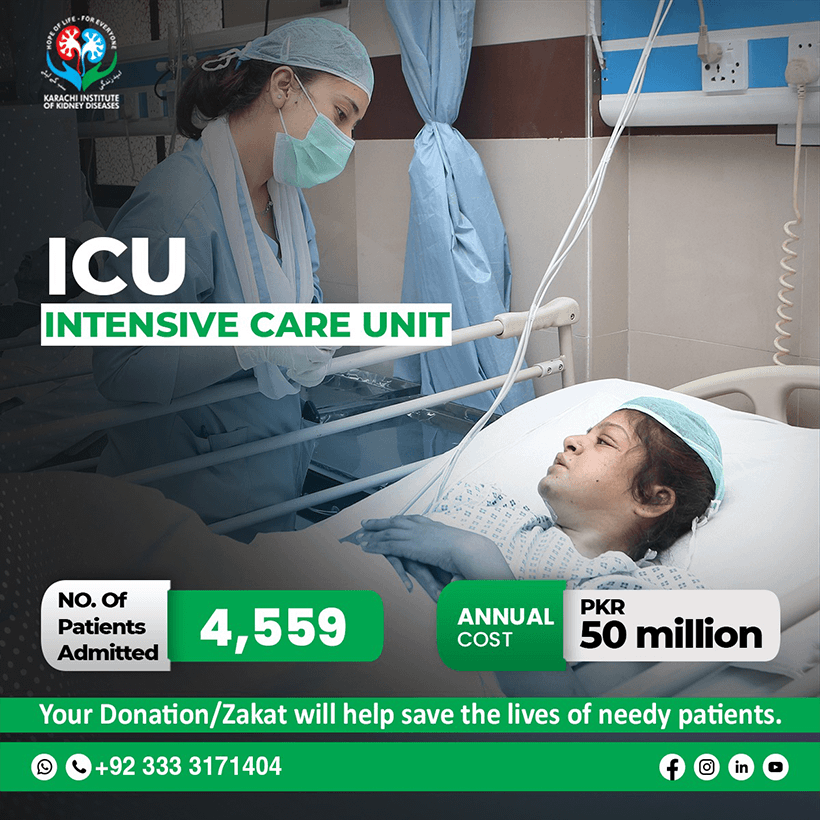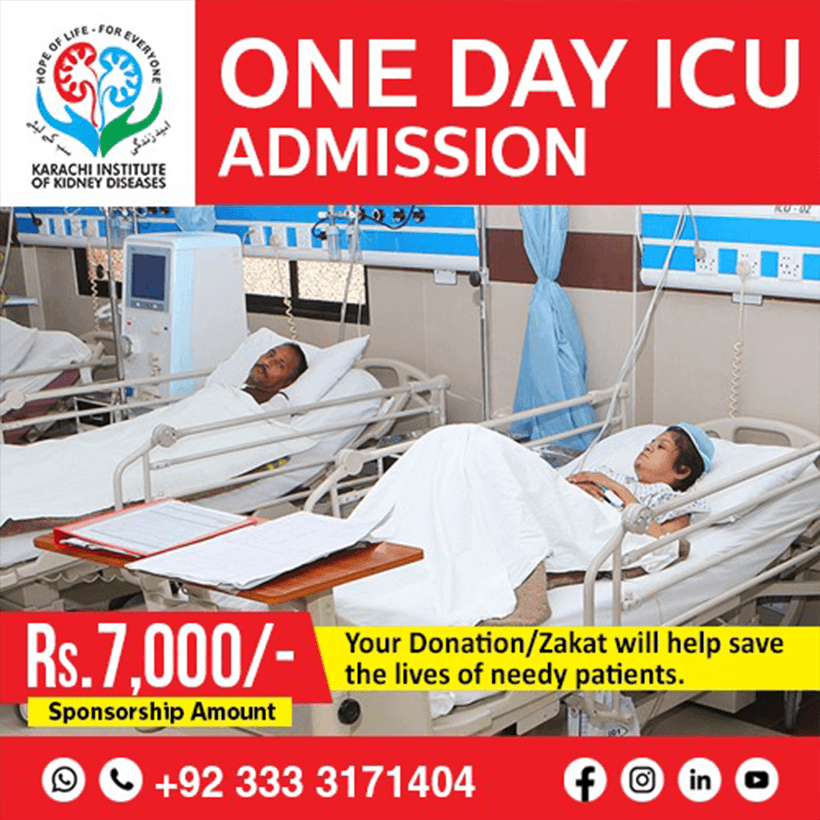 KARACHI INSTITUTE OF KIDNEY DISEASES was established in 2009 & remained nonfunctional till 2016 due to the unavailability of funds. After an M.O.U signed between KARACHI METROPOLITAN CORPORATION and KARACHI INSTITUTE OF KIDNEY DISEASES ASSOCIATION in 2017, it became functional, and just within the period of three years, the institute is now ranked 2nd after S.I.U.T in the public sector in providing dialysis and other facilities free of cost to kidney patients.