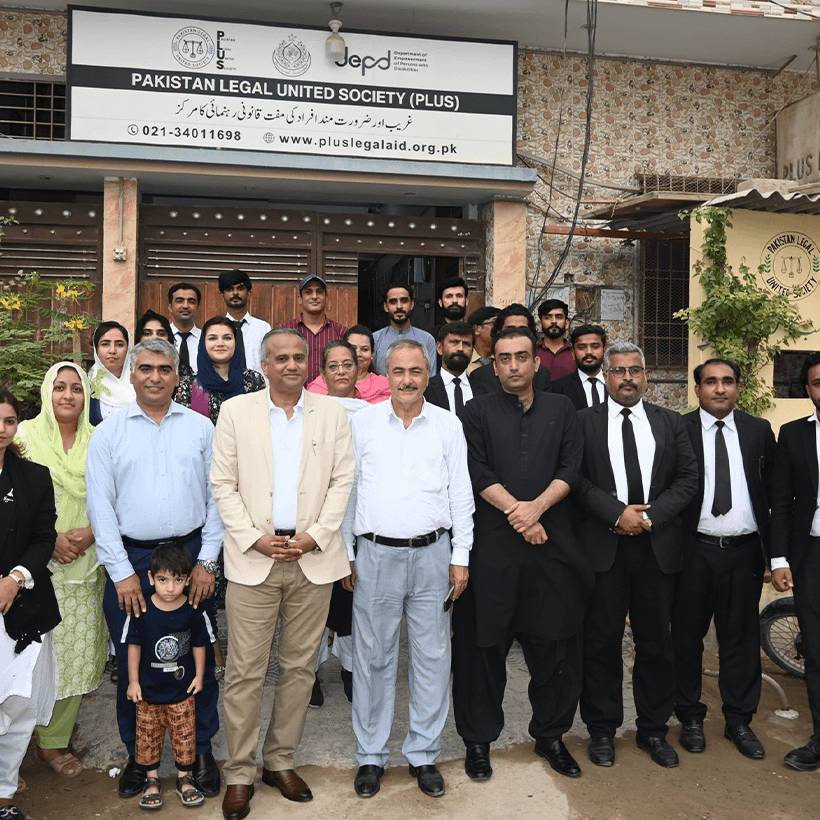 - Legal Aid: Pakistan Legal United Society (PLUS) has been providing pro bono legal services across Sindh to marginalized communities, including men, women, transgender individuals, persons with disabilities, children, and minorities. Over the past five years, PLUS has facilitated and filed 2,893 cases before the District and High Courts of Sindh and has provided legal advice to thousands of individuals in need.